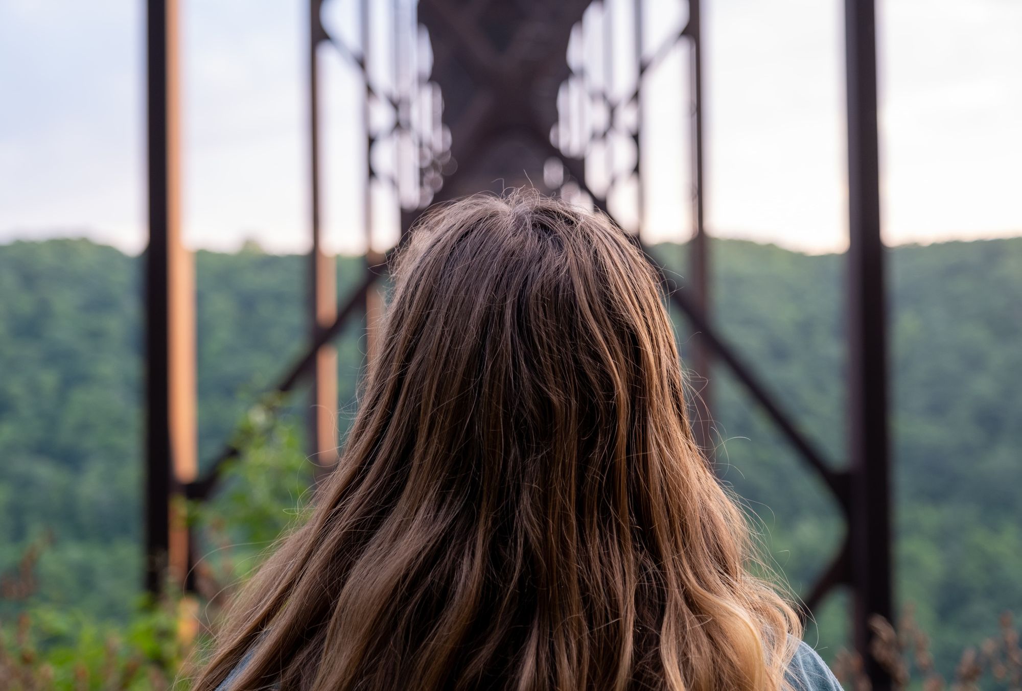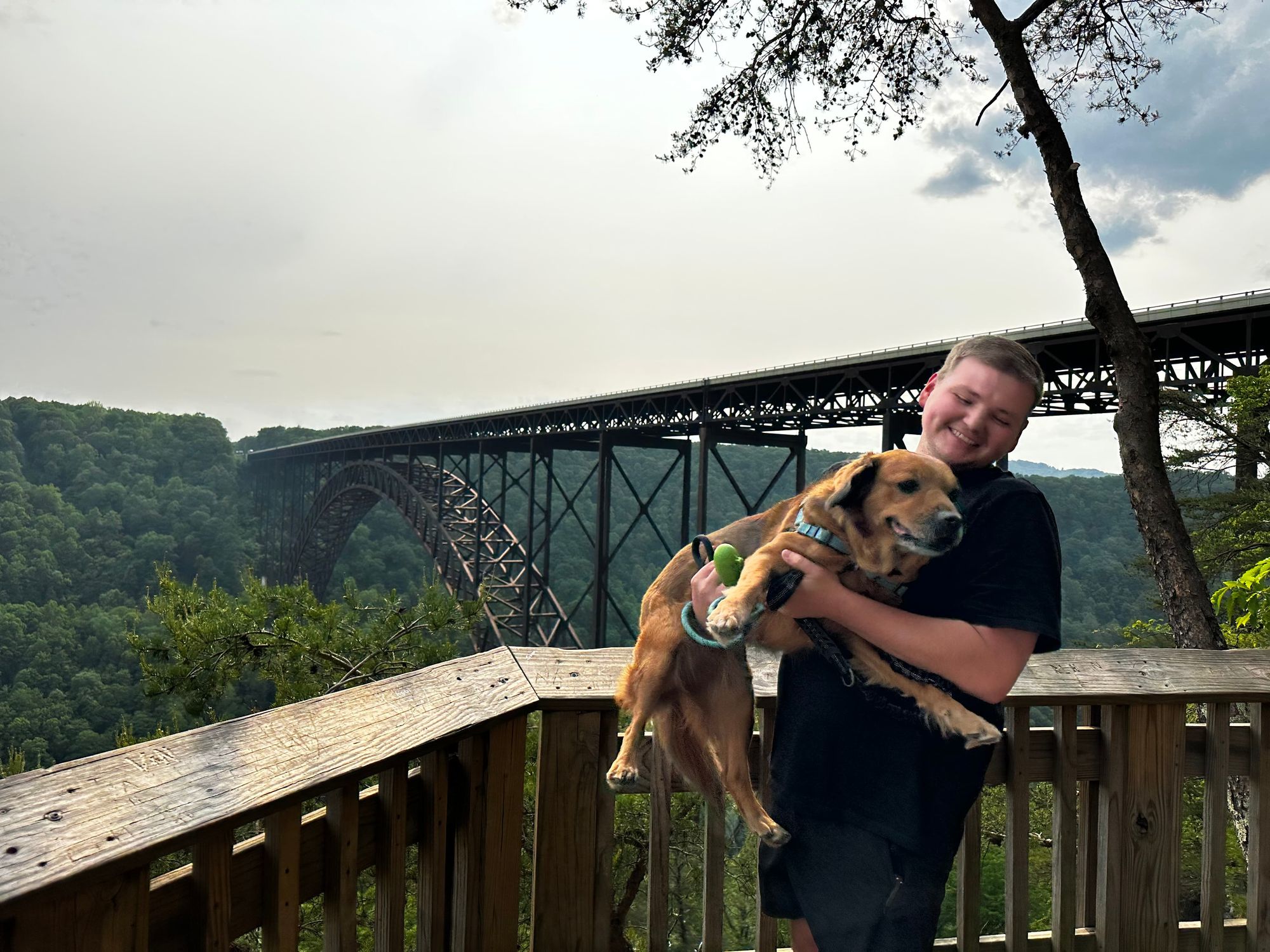 We went to Canyon Rim Visitor Center first after we crossed the bridge. There's a gift shop and a small museum where you can read about the area's history (mainly in coal mining) and the bridge construction. There's also a few overlooks at the visitor's center: one out back with a river view, one overlooking the top of the bridge (where we got the timelapse video below), and the Canyon Rim Boardwalk, where you walk down a bunch of steps for a great view right next to the bridge.