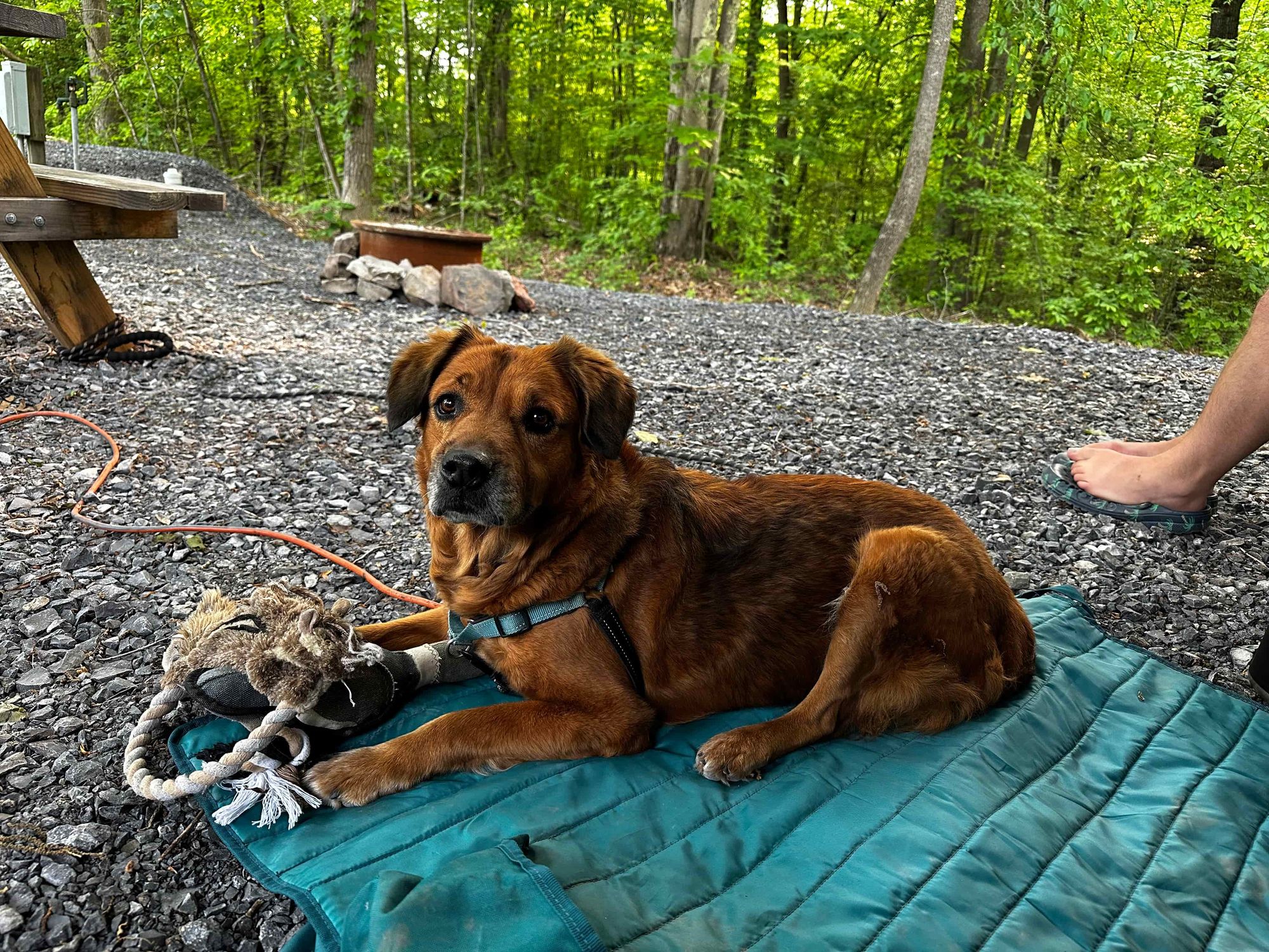 It was a super quiet campground (until Thursday, when people started filing in for Memorial Day weekend) which we loved. There were 20-25ish RV sites, and only a few of them were occupied when we got there. Our site was shaded by trees and had a picnic table and fire ring. We walked Hollie on the gravel roads and paths in the woods throughout the campground.