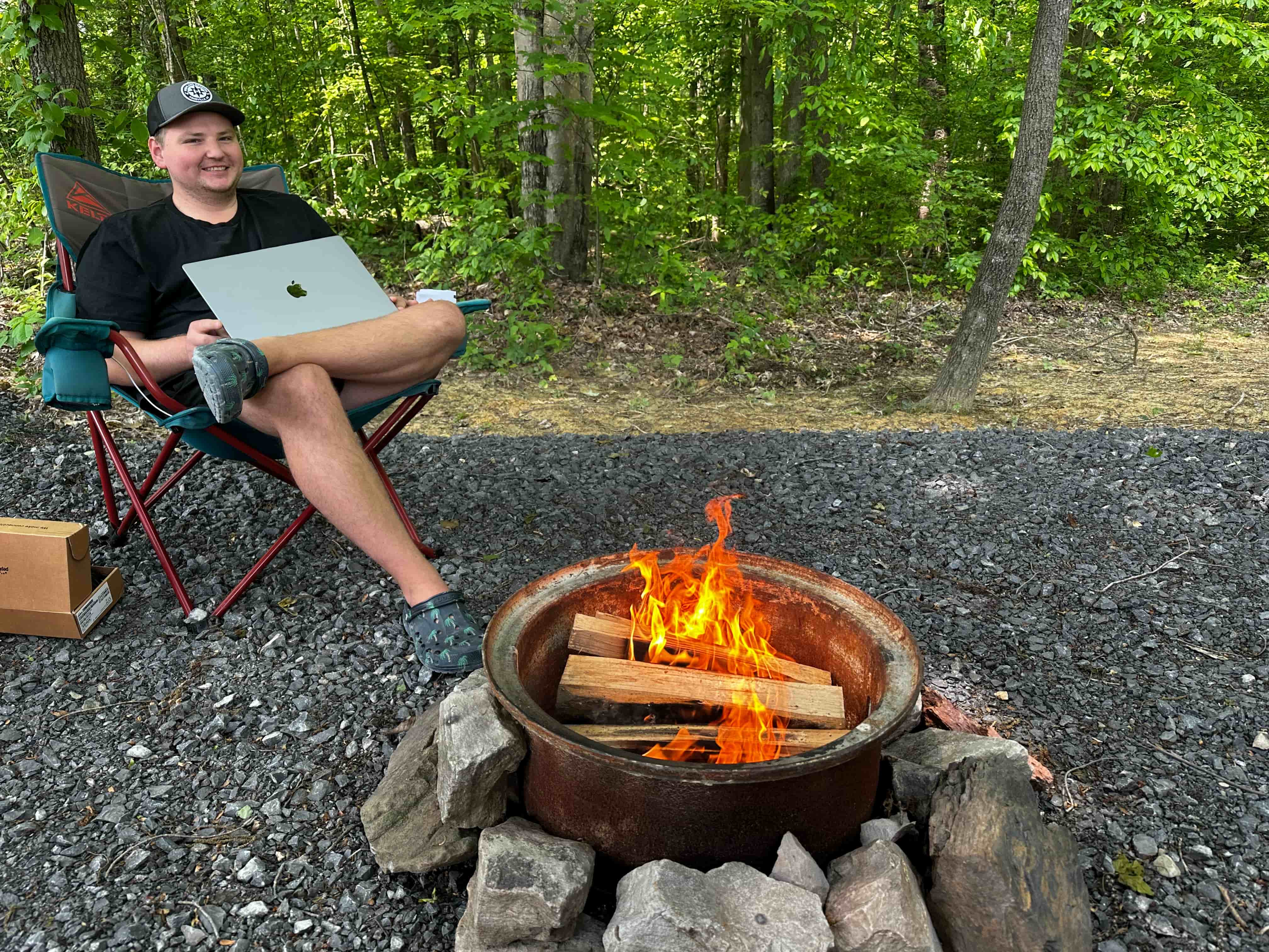 We had perfect camping weather the entire week: sunny, 50s at night, 70s during the day. So we both worked outside at the picnic table or in our camp chairs the whole time. Our internet connection was good and it was pretty relaxing, working at the quiet campsite under the trees. One upside of working while traveling is that we'll always have a change of scenery. But a downside is that we're surrounded by people who are retired or on vacation, and it's easy to feel like we're on vacation too. Gotta stay motivated!