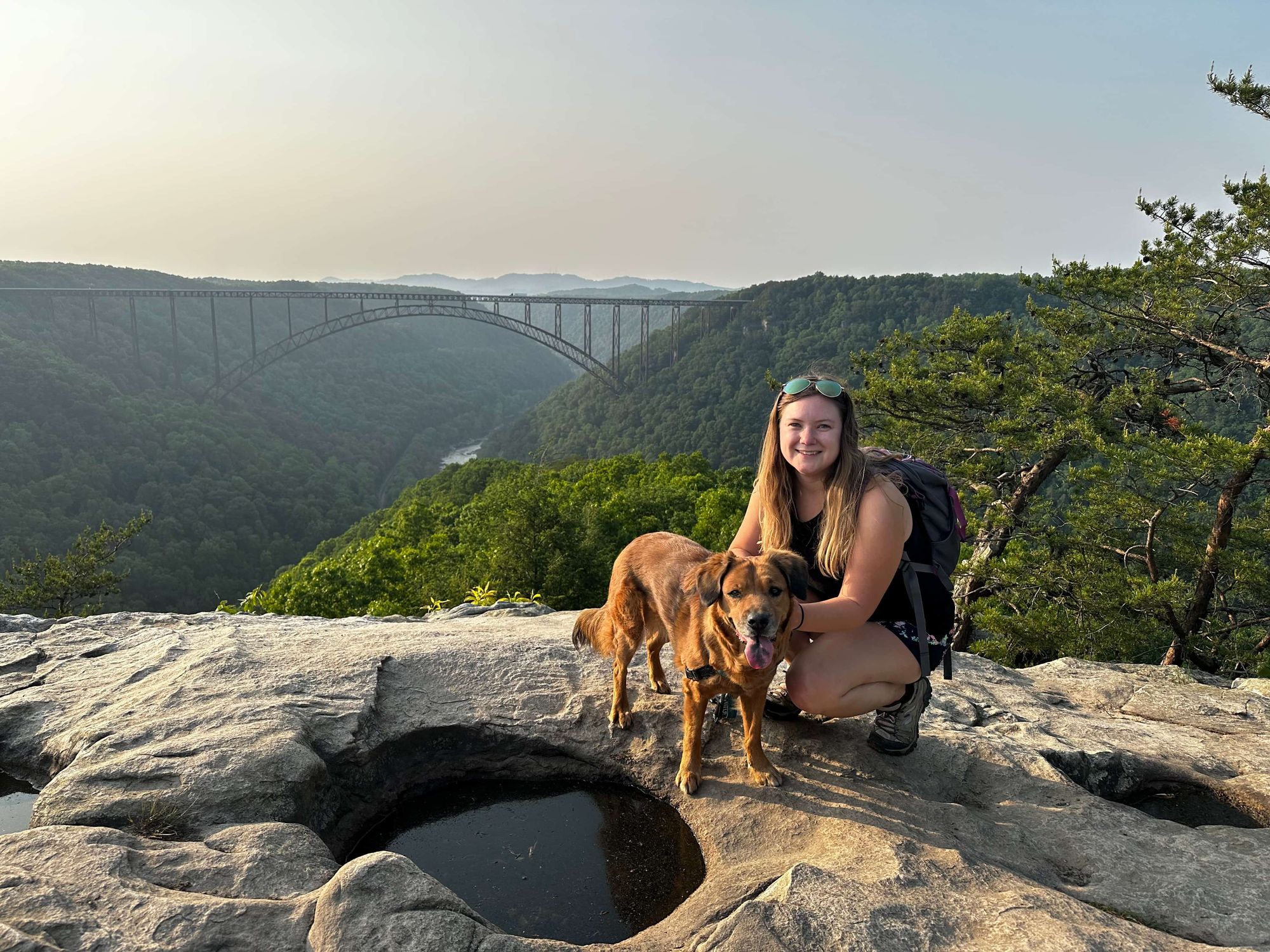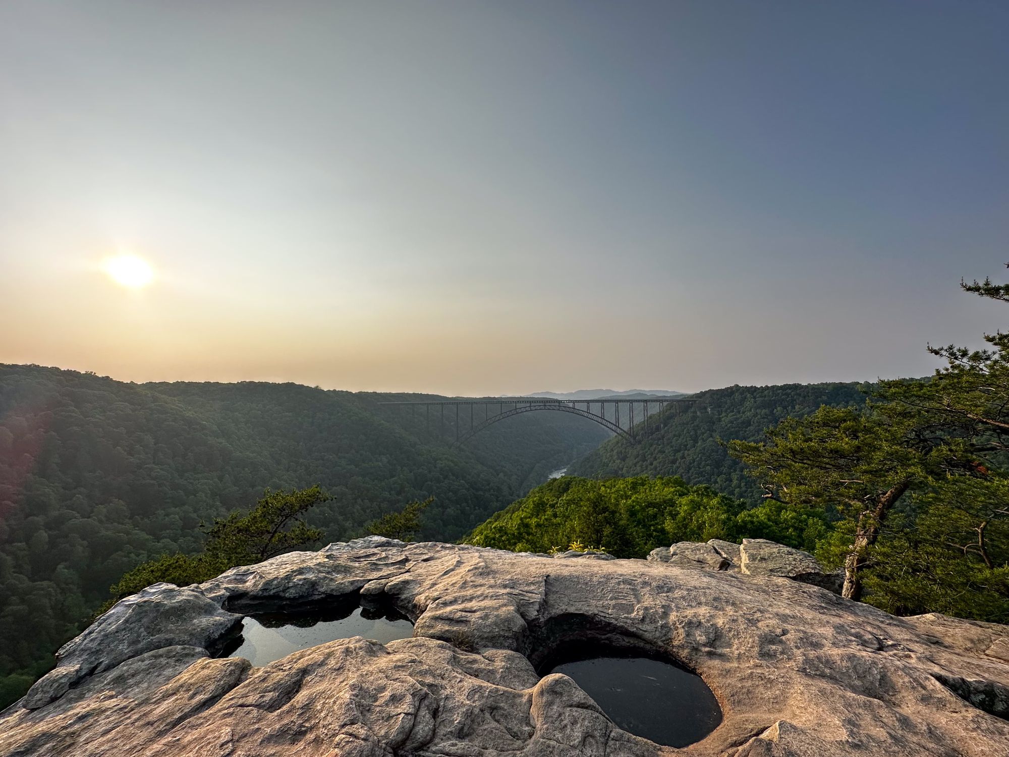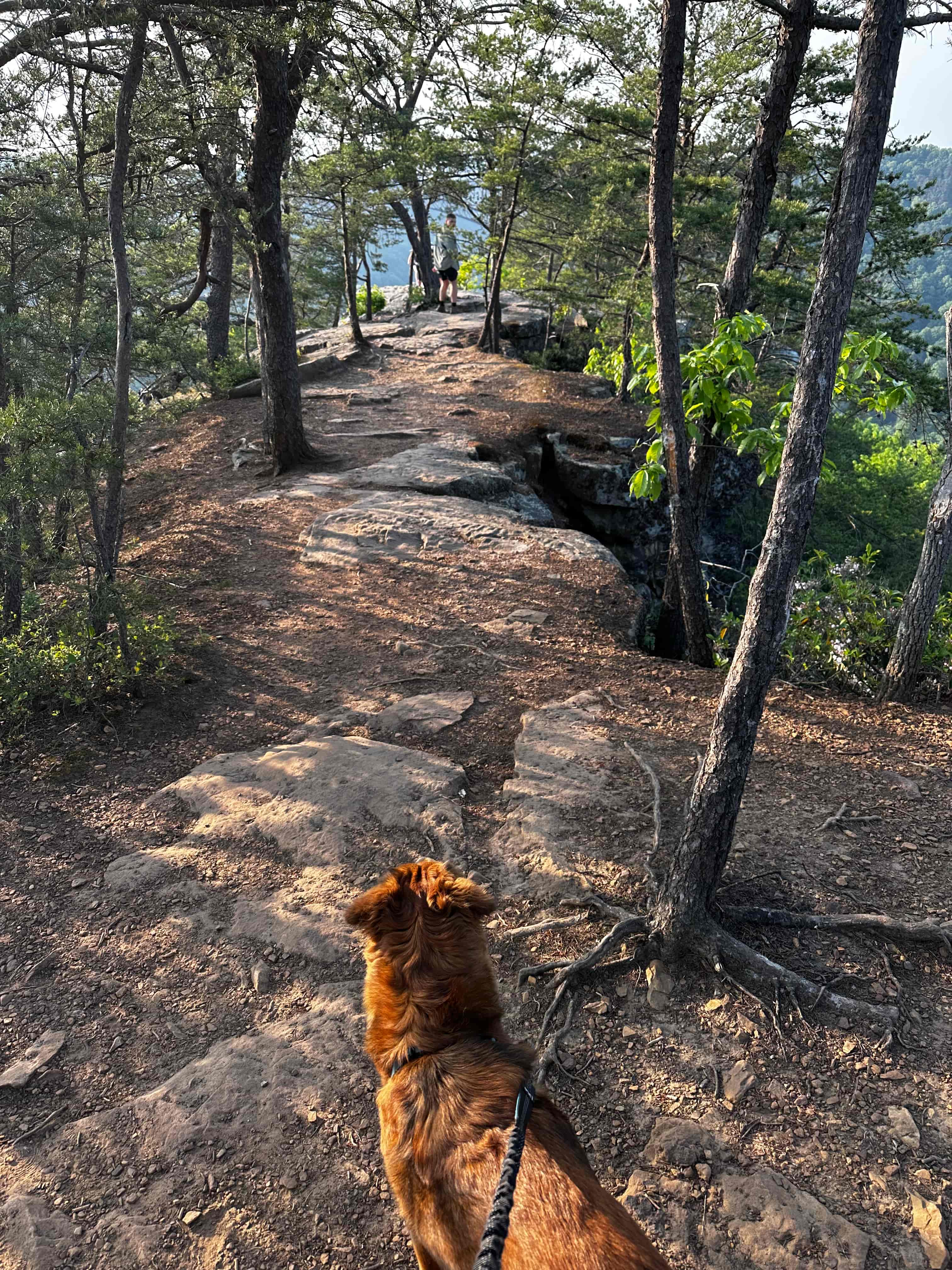 On Wednesday evening, we hiked the Long Point Trail, a 3-mile trail that ends with amazing gorge and bridge views. It was beautiful and pretty easy – you can tell it's a popular sunset spot. I loved seeing all the rhododendrons, even though they weren't in bloom, and mountain laurels. We stayed for a long time at the top taking in the view and listening to the echoes of cars crossing the bridge.