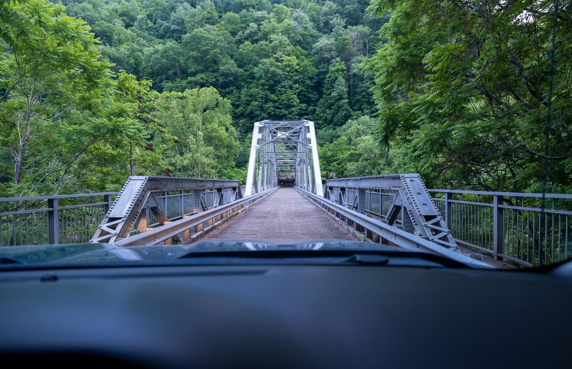 At the visitor's center we saw a sign for the Fayette Station Road Audio Tour, so we did that one day after work. The audio tour explained the history of the area as we drove down the winding Fayette Station Road into the gorge. At the bottom, we crossed across the small (kind of sketchy in our big truck) Tunney Hunsaker Bridge over the river, and went up the mountain again on the other side. This was the original drive that everyone in the area had to do before the New River Gorge Bridge was built. I can't imagine doing it in the winter or hard rains.