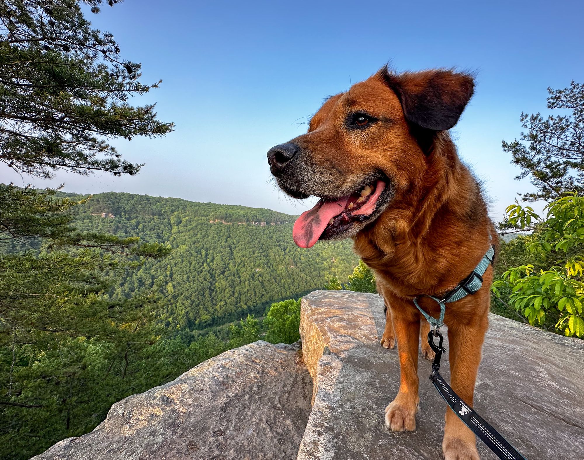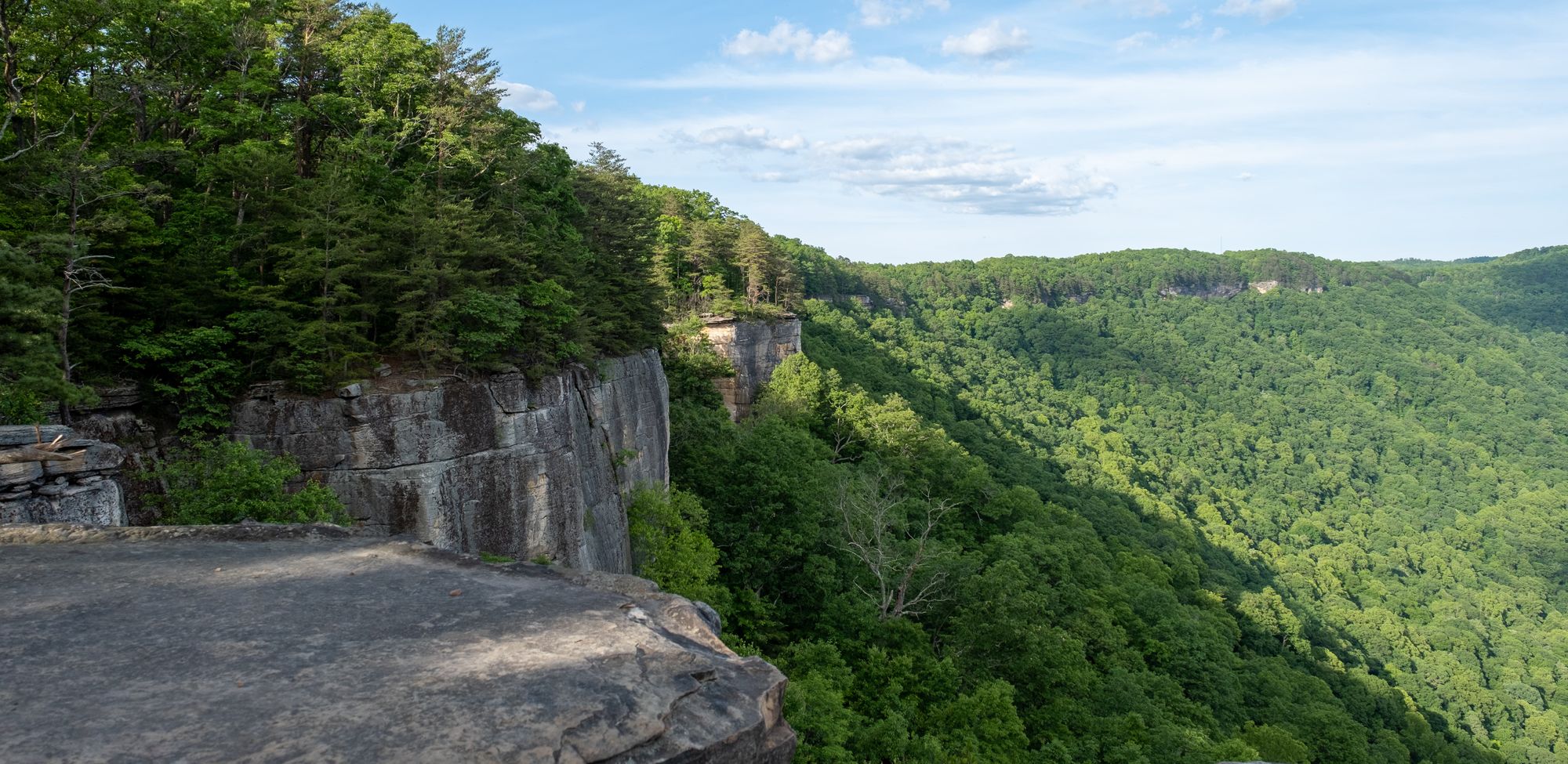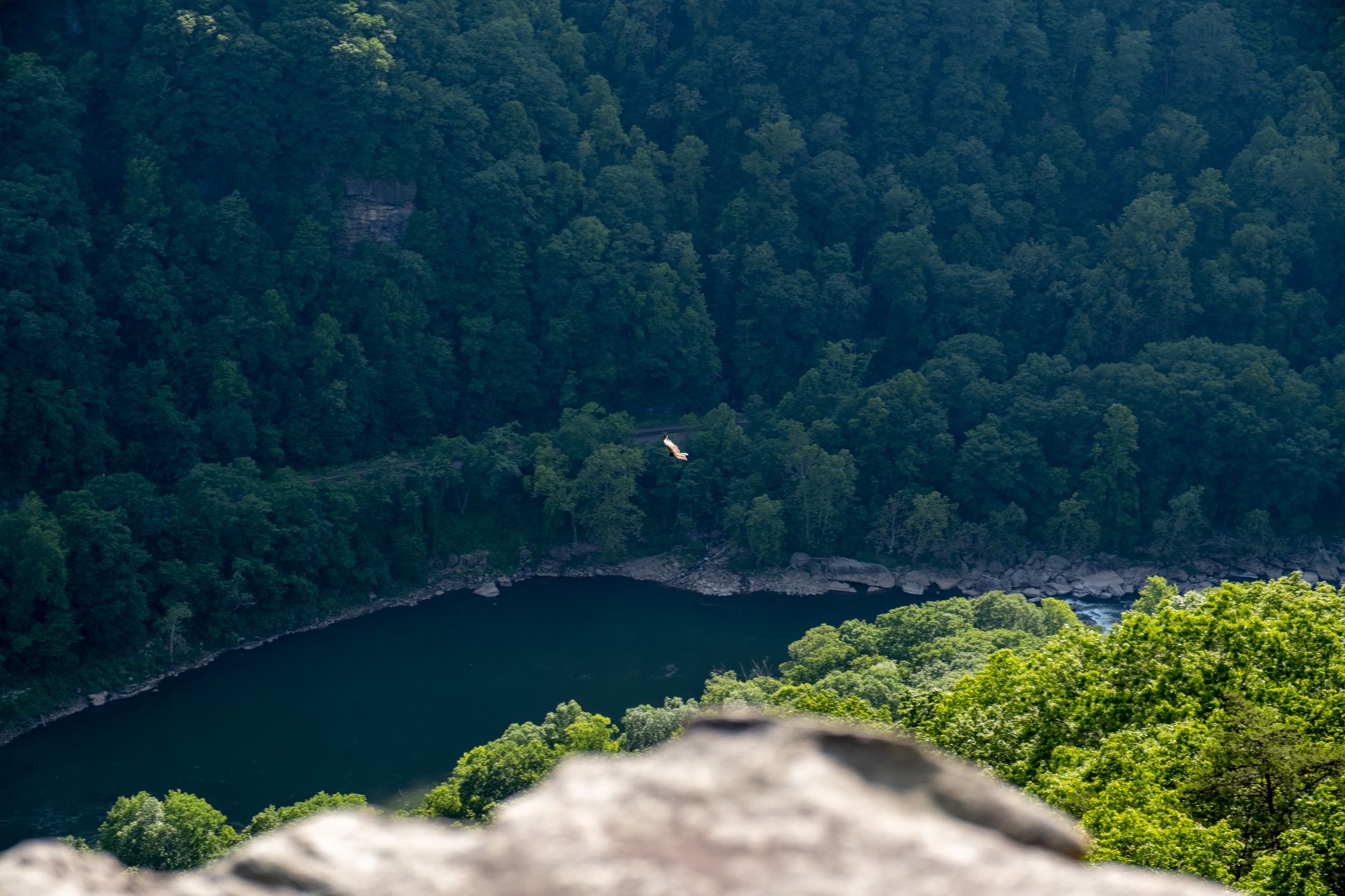 Friday, we did the Endless Wall Trail for more incredible gorge views. It's about the same length and difficulty as Long Point. You can't see the bridge from this trail, but it has better angles for watching the river and rafters (and the hawks flying over them), plus huge cliffsides where people rock climb. It was another popular trail with several overlooks along the mountainside and the "endless wall."