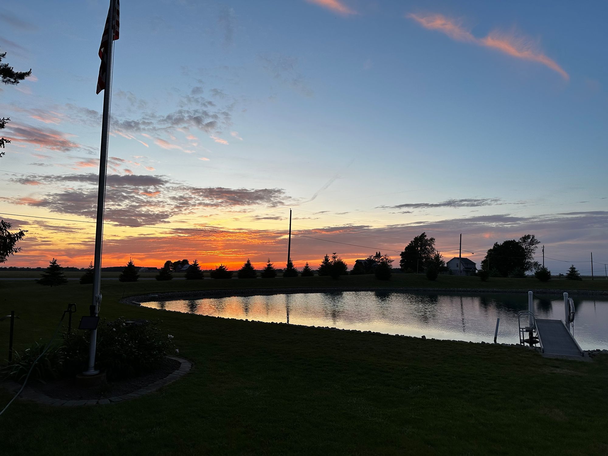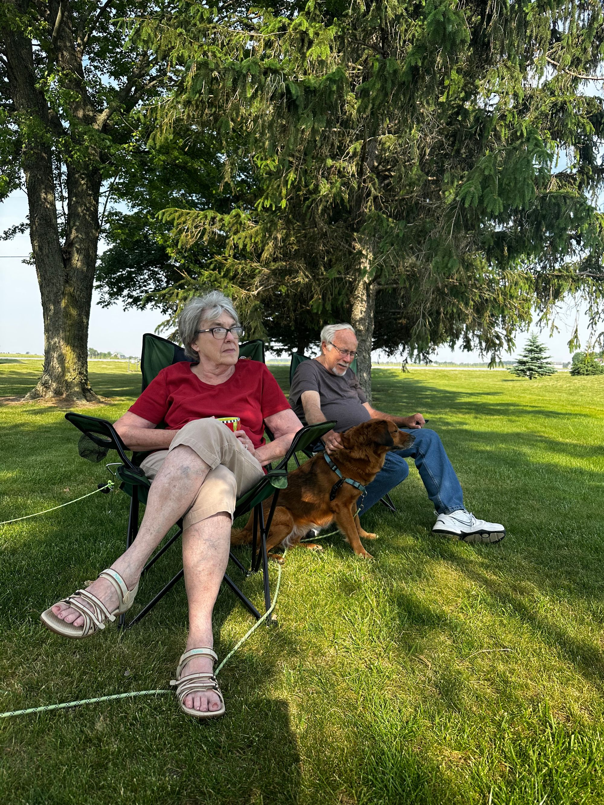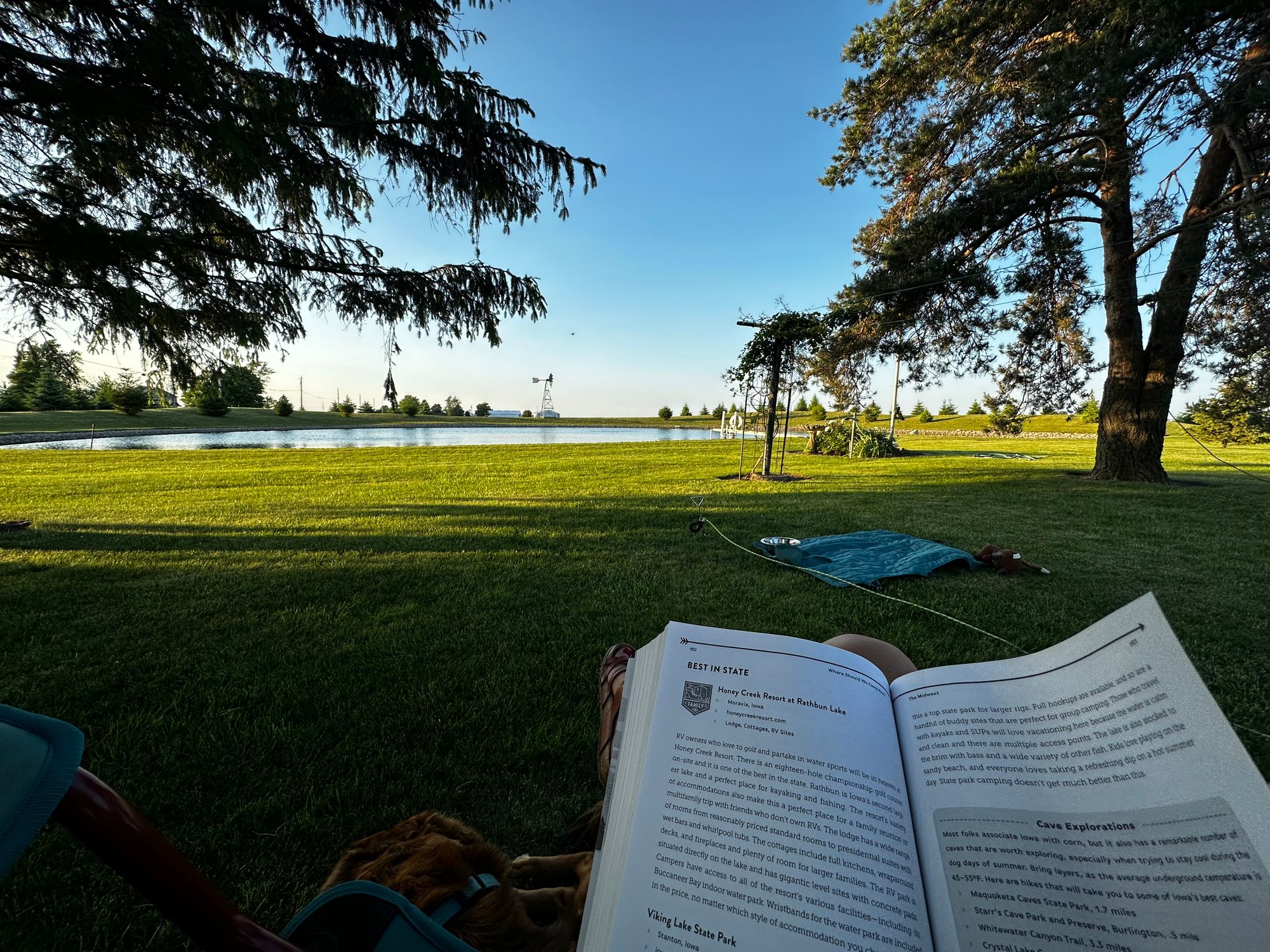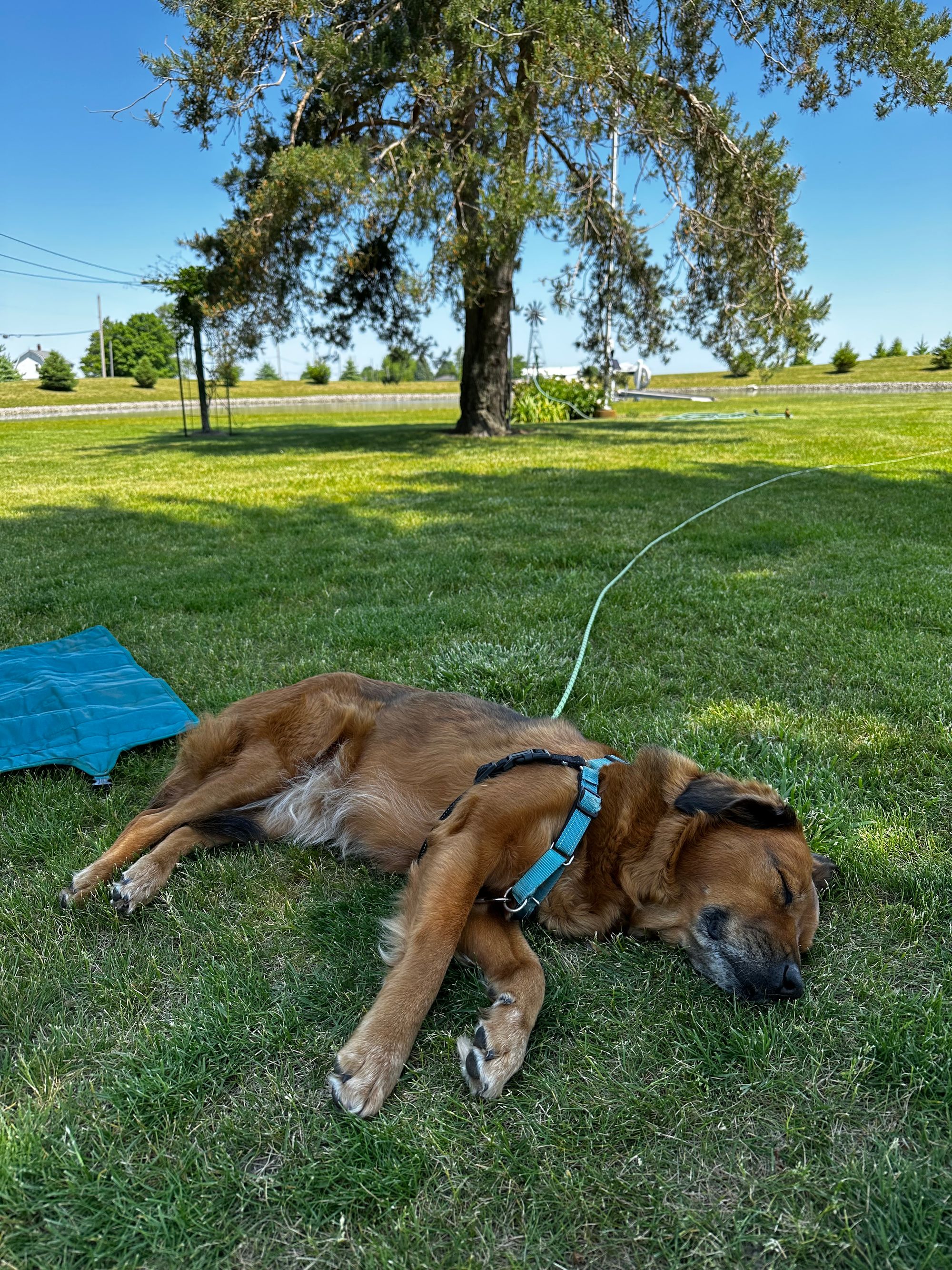 Our back window looked out over the pond and the fields, where we could watch the sunset each night. Hollie got to be on her long leash staked in the yard during the day, where she had fun running around and relaxing in the grass.