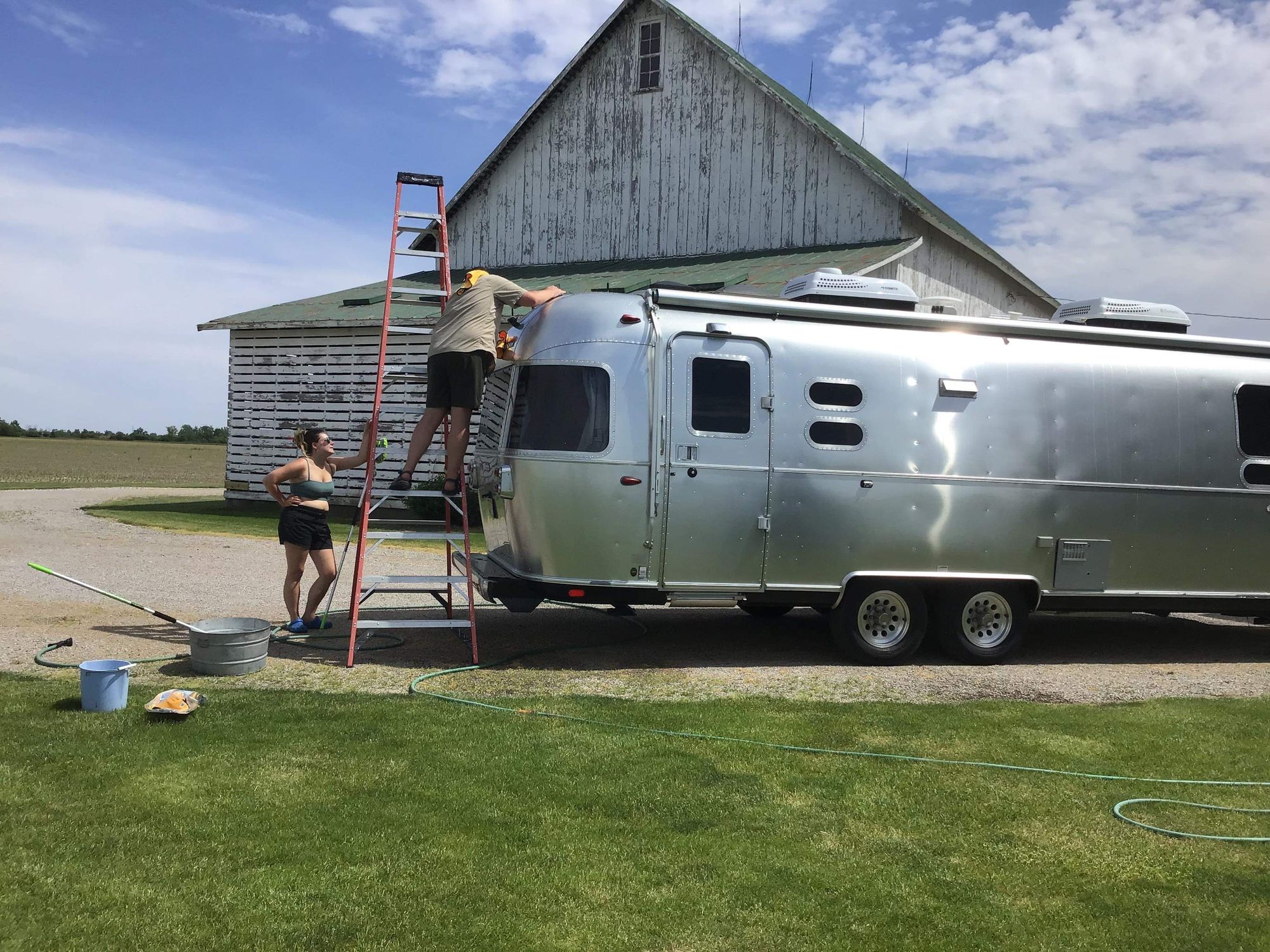 The Corn City Campground (as we're calling it lol) gets 5 stars from us. We parked the Airstream right next to my grandparents' barn, where we could hook up to electricity. We weren't hooked up to water, but it didn't matter β we filled our fresh water tank and went to my grandparents' house to shower (that's what fills up our holding tank fastest).